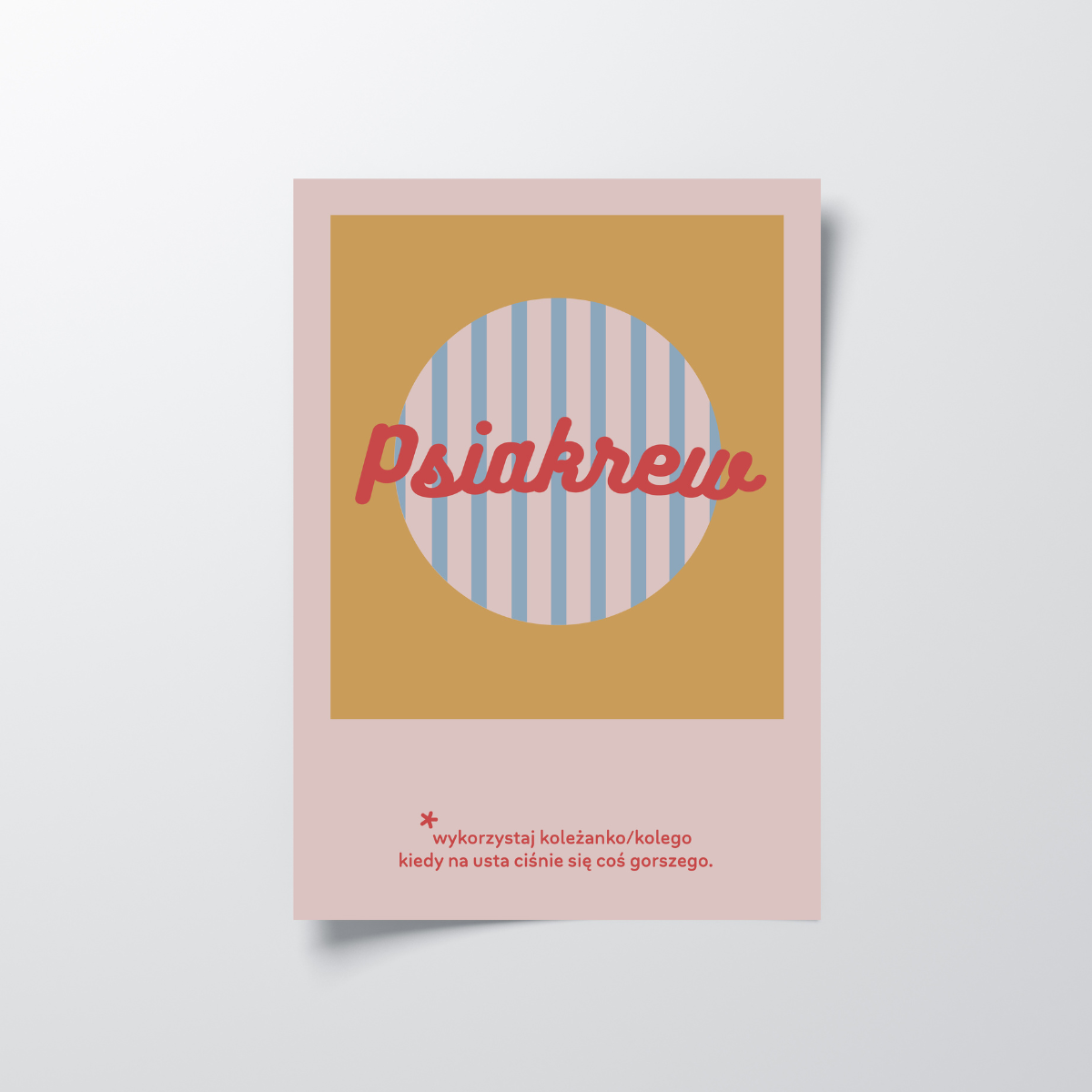 Jak świat światem, człowiek nie okrasi brzydkim słowem tego, co mu nie przypasi. A że taki proceder kulturalnej personie nie przystoi, eufemizmem swoją potrzebę sytuacji rozładowania zaspokoi. By taki nerwusek miał skąd zaczerpnąć inspiracji, sięgnij po plakat z hasłem idealnym przy każdej frustracji. “Psiakrew” w czerwonym kolorze sugeruje, że z posiadaczem tego plakatu się nie dyskutuje.