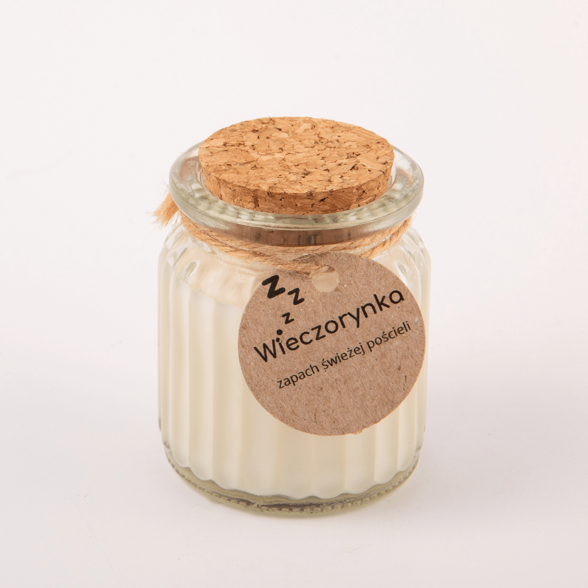 Kiedy lubisz nastrojowe wieczory, a nie masz w domu kominka, z pomocą przyjdzie Wieczorynka. Swym światłem ukoi, zapachem otoczy, każdego ta świeca wręcz zauroczy. Jej woń przywodzi najlepsze wspomnienia, gdy babcia ciepłą kołderką otulała troszcząc się o piękne senne marzenia. Nuta świeżej pościeli nie tylko zrelaksuje, lecz także sentymentalną podróż zainicjuje. Idealnie się sprawdzi po dniu ciężkiej pracy i w ponure wieczory, kiedy człowiek potrzebuje naładować akumulatory. Do tego jej wygląd elegancki, z klasą, uroczy i delikatny, każdy szczegół wręcz akuratny.